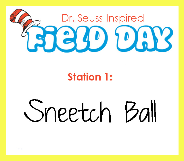 I recently learned about an awesome Dr. Seuss-inspired field day planned and organized by Patti, an elementary school PE teacher. Here is one of her 21 stations: